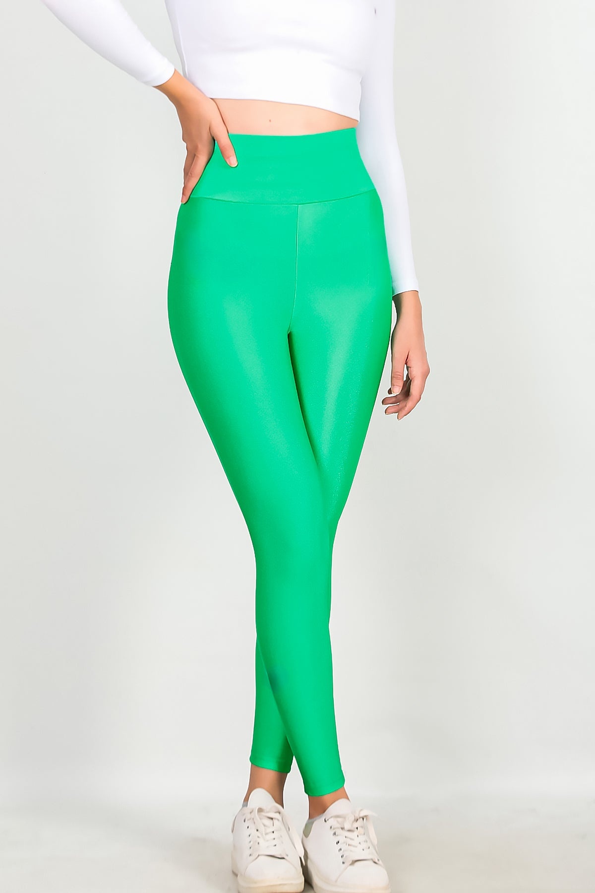 Kadın Yüksek Bel Parlak Tayt Açık Yeşil Açık Yeşil