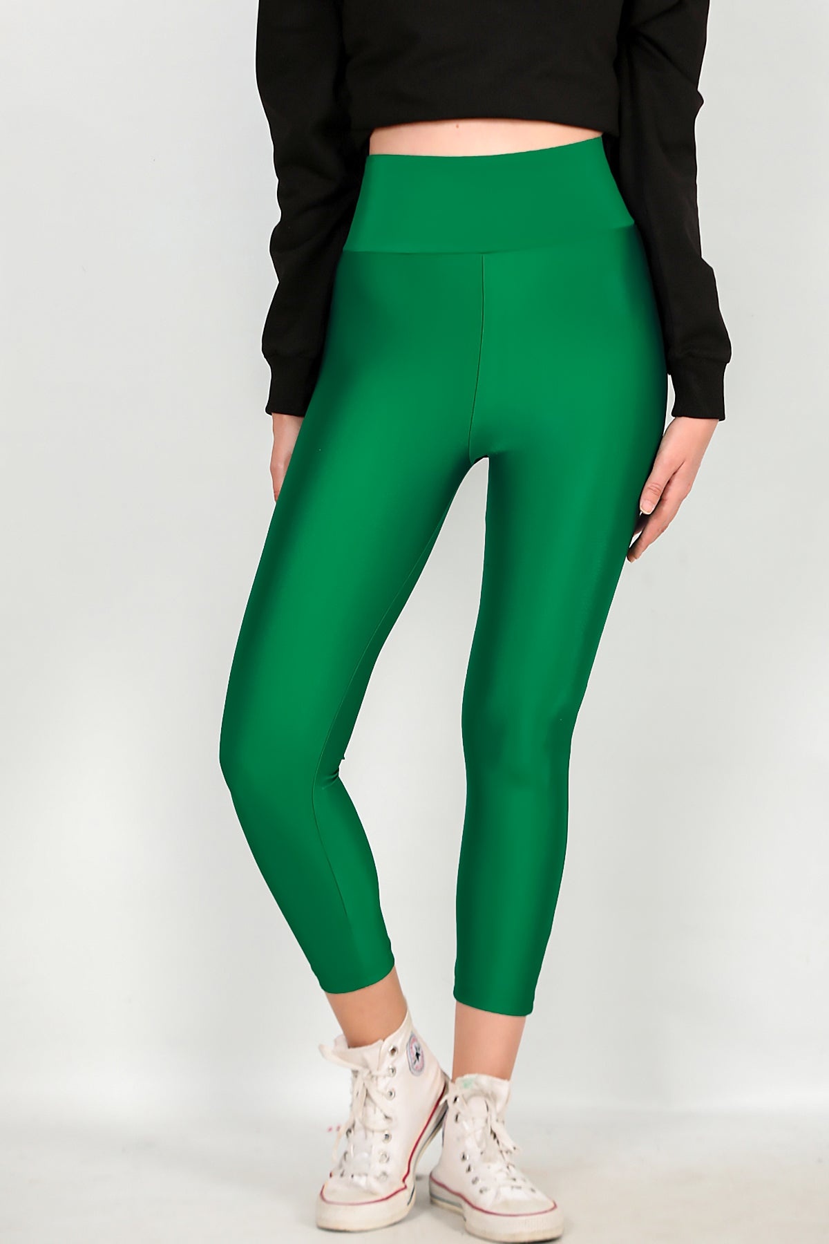 Kadın Yüksek Bel Parlak Tayt Koyu Yeşil Koyu Yeşil