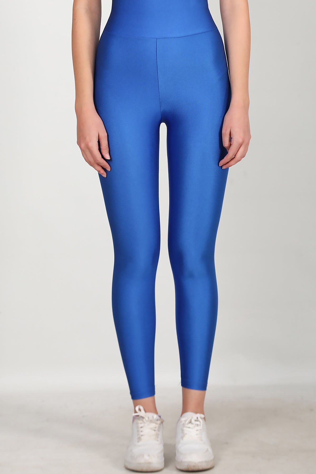 Kadın Yüksek Bel Parlak Tayt Saks Saks