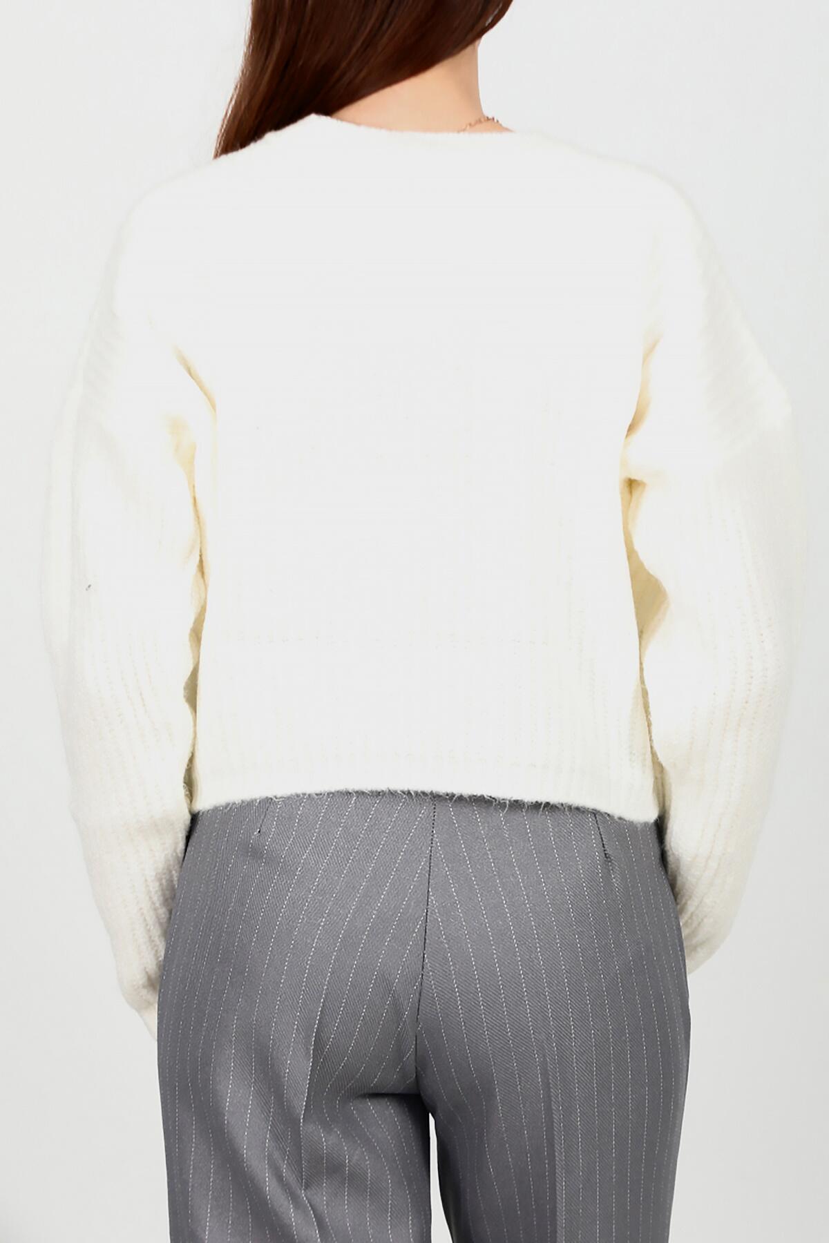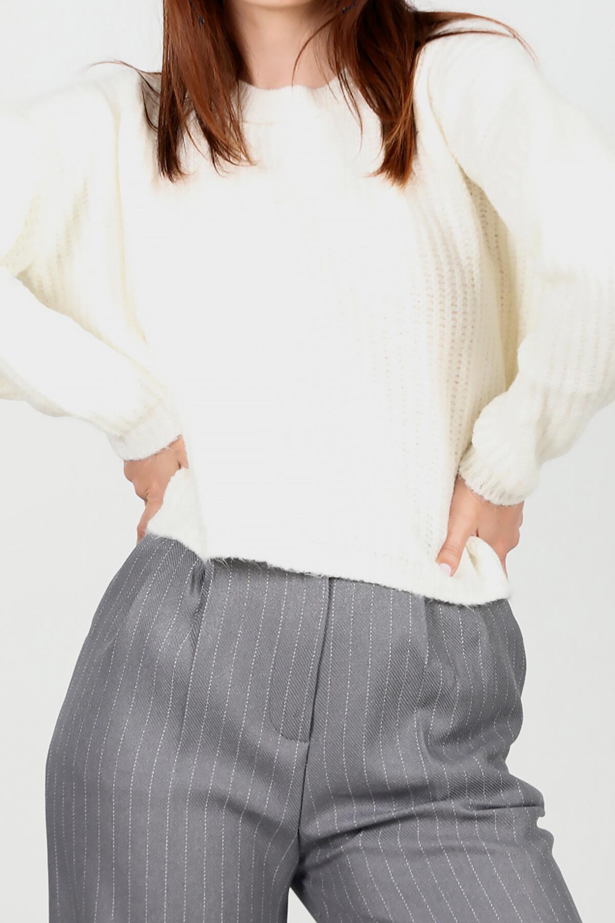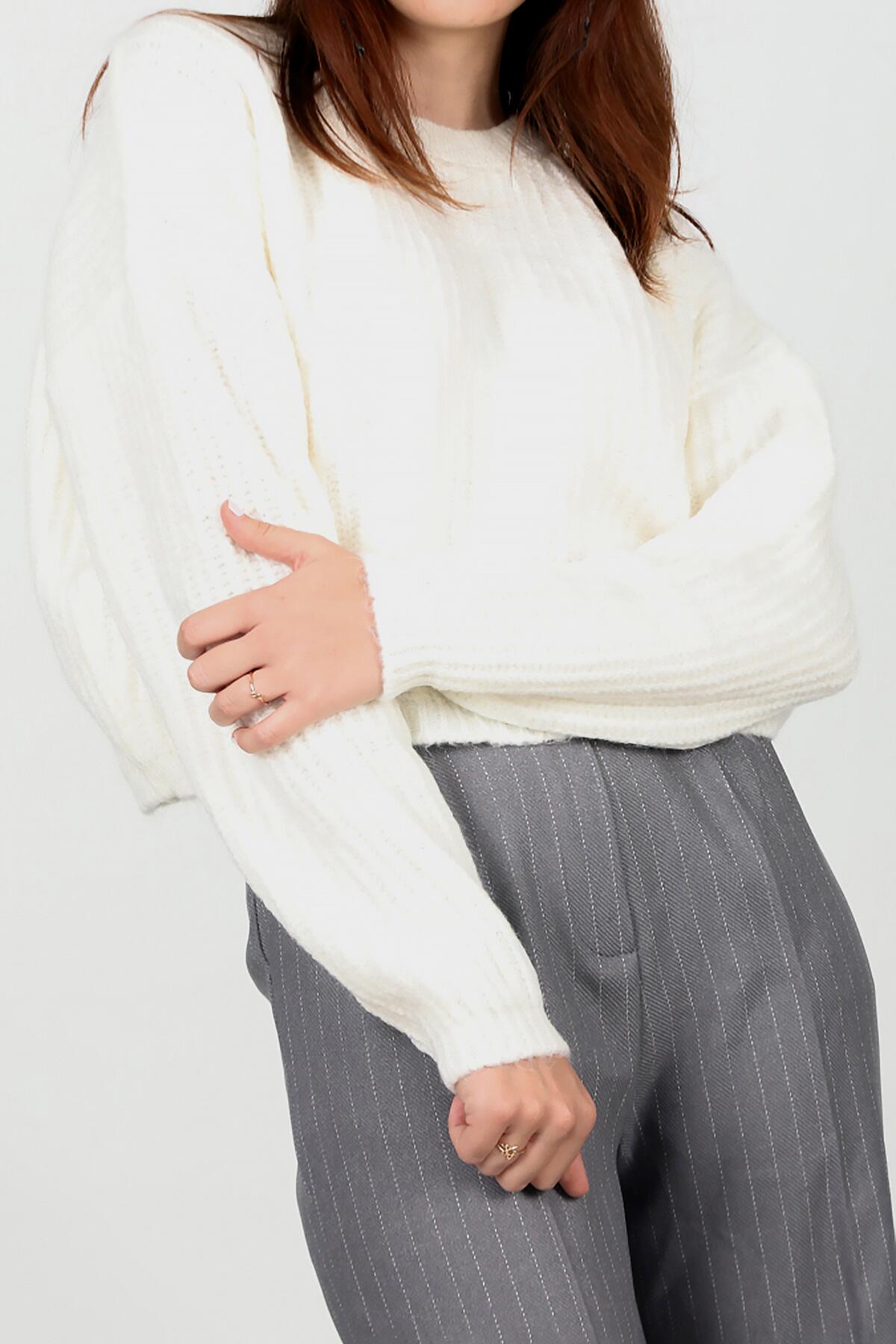Kadın Bisiklet Yaka Kısa Salaş Kazak Ekru