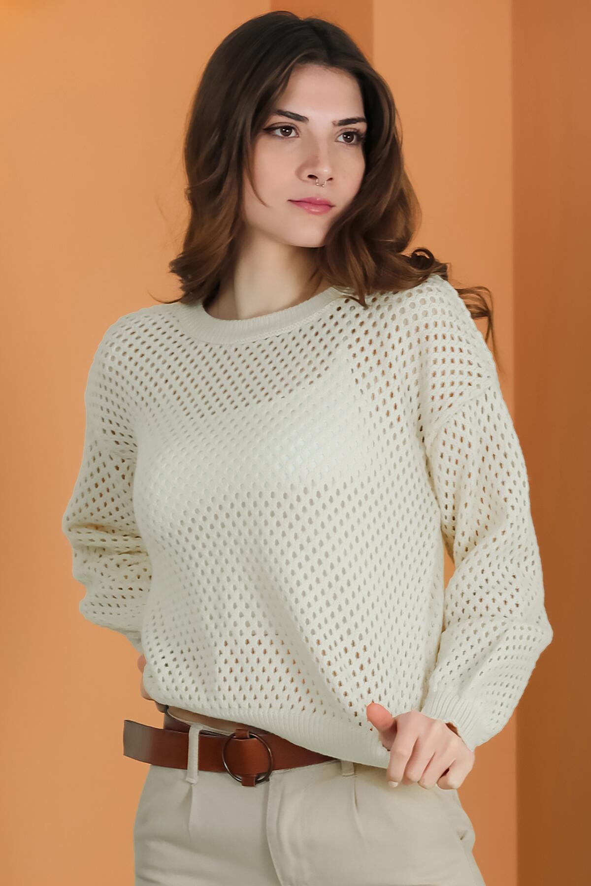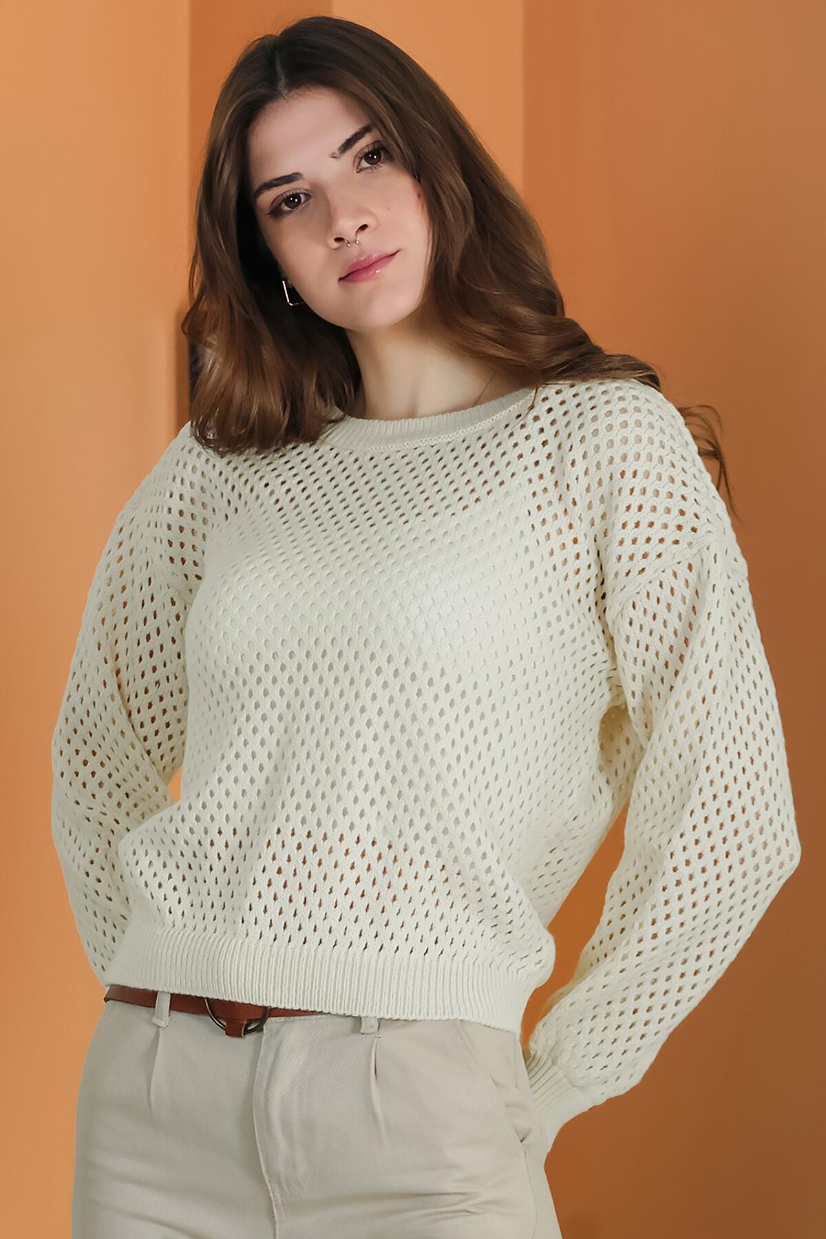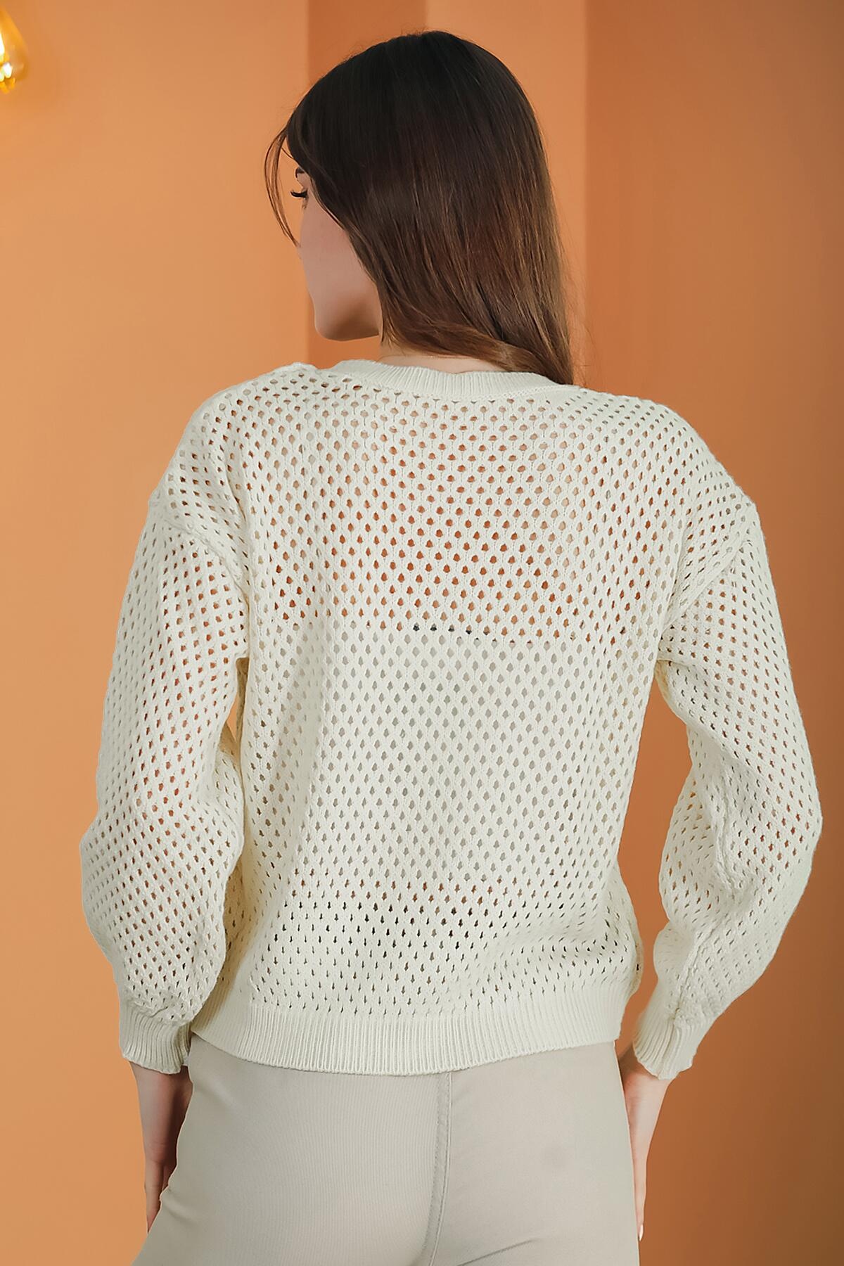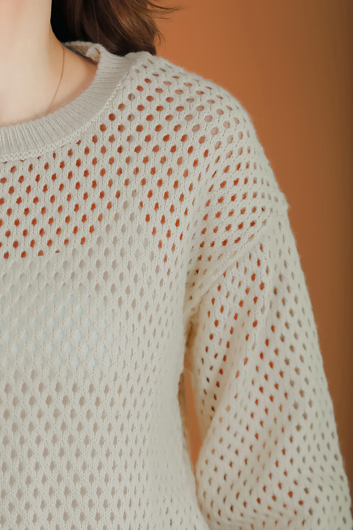 Kadın Delikli Triko Bluz Taş