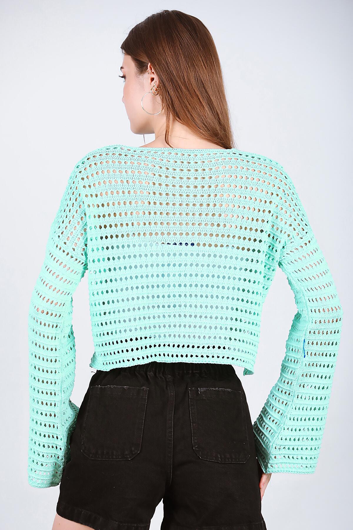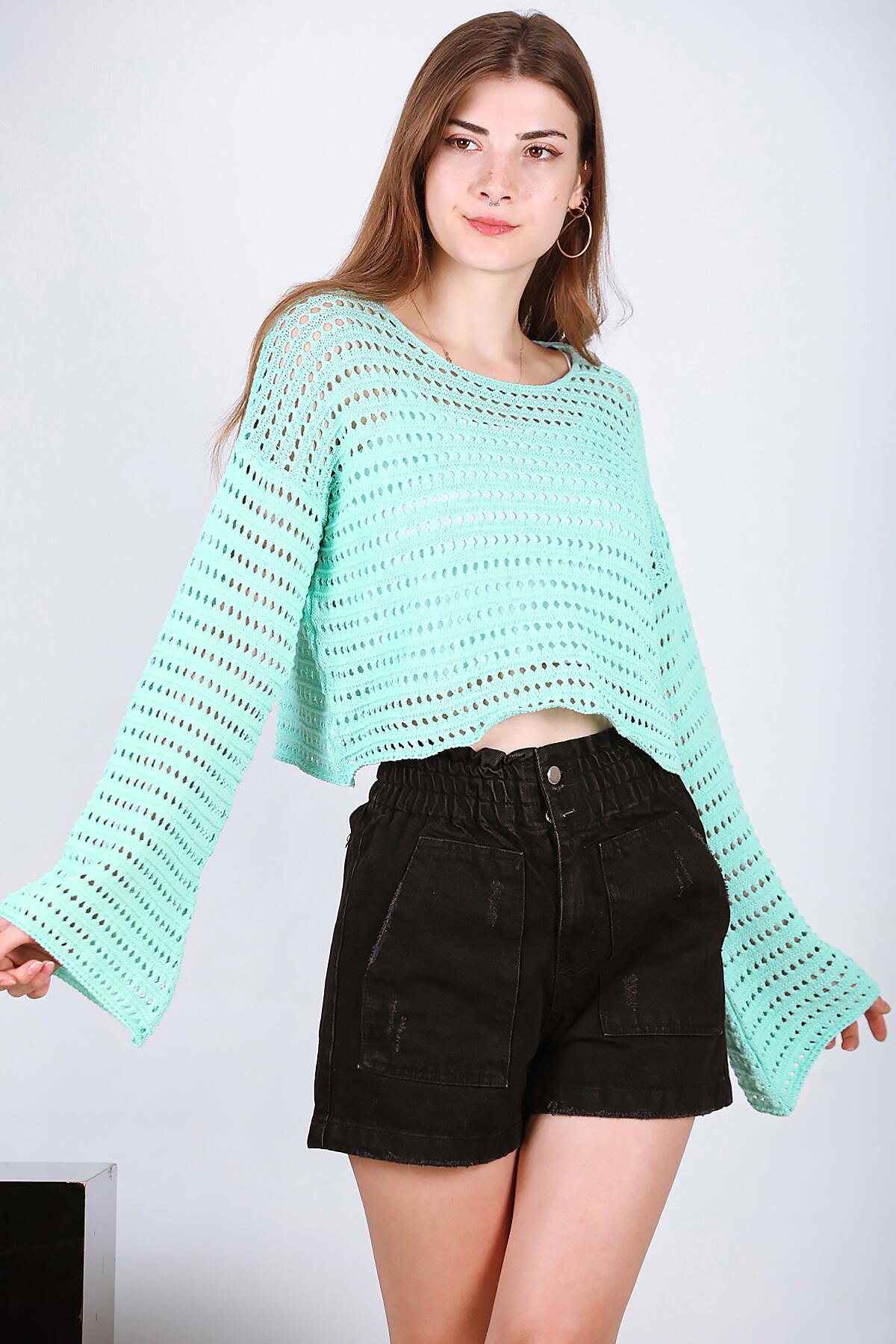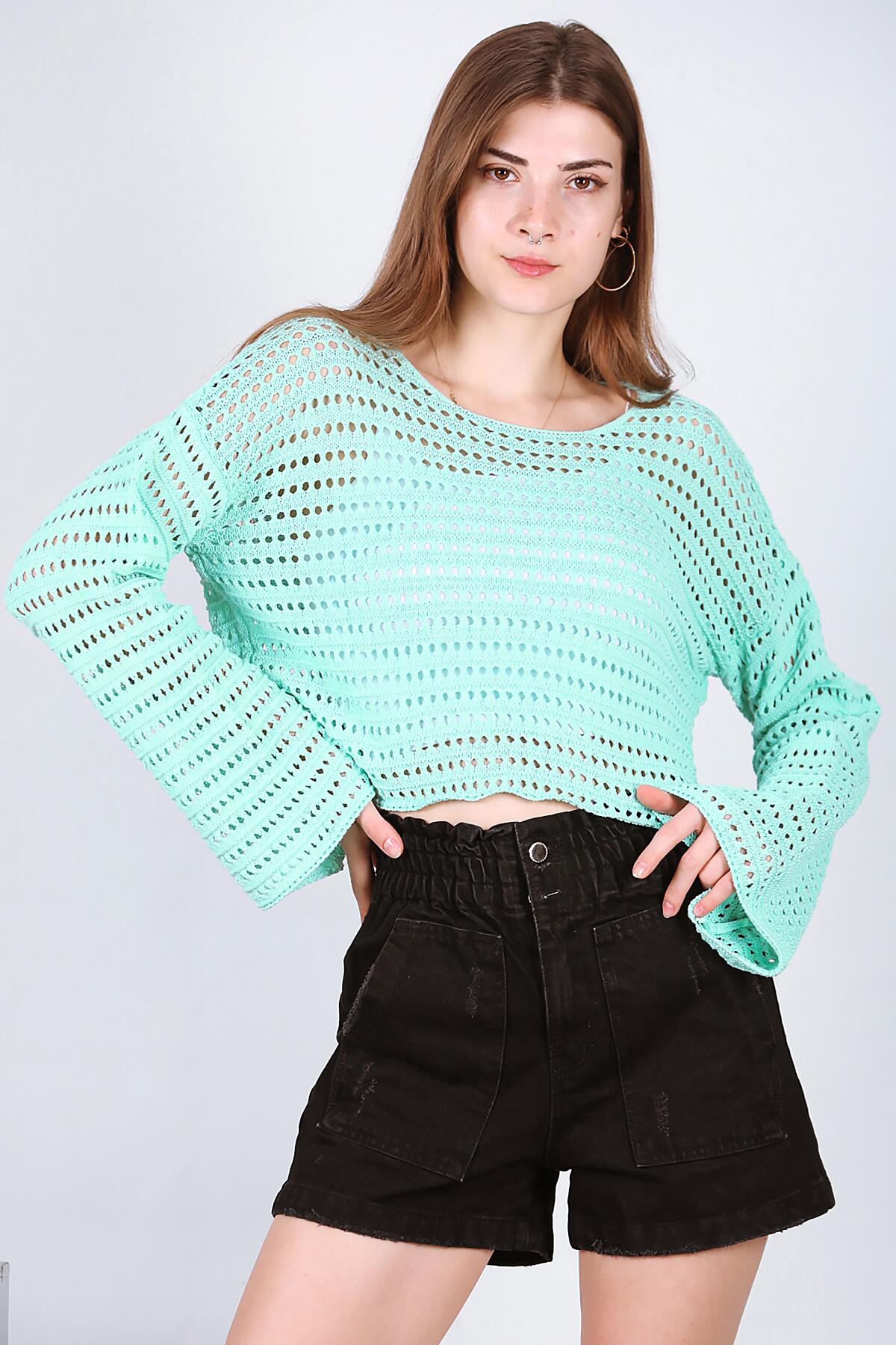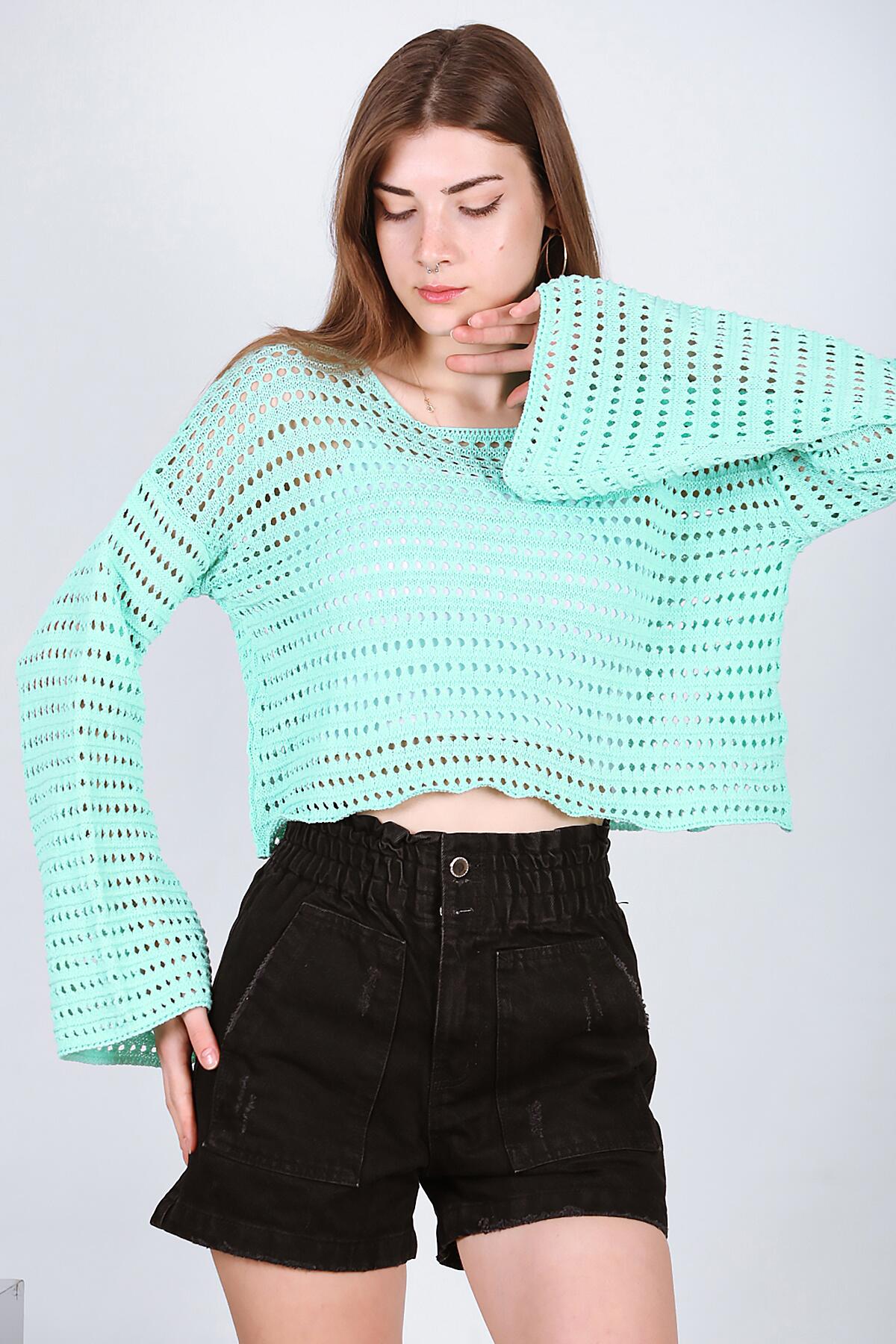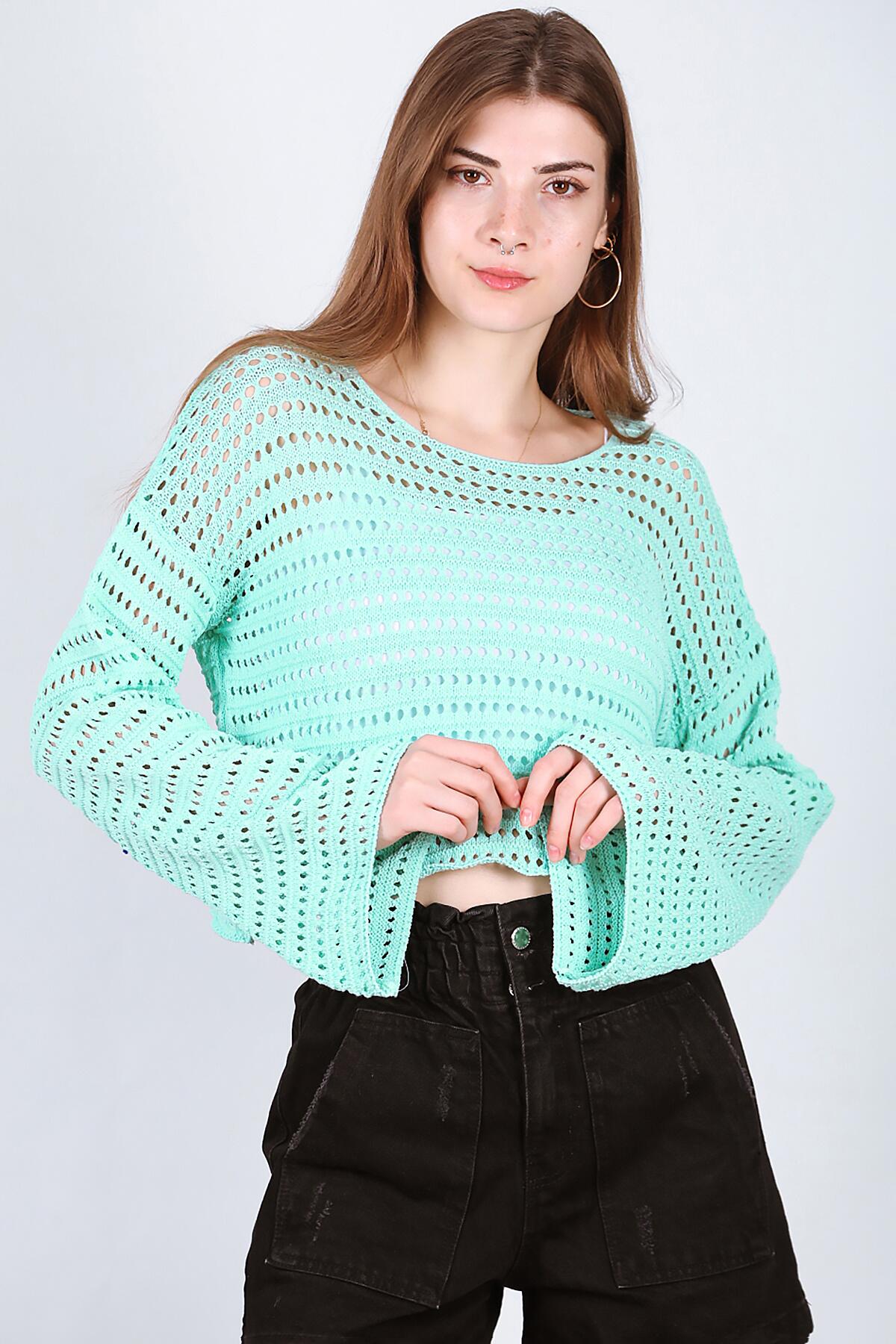 Kadın Delikli Triko Mint