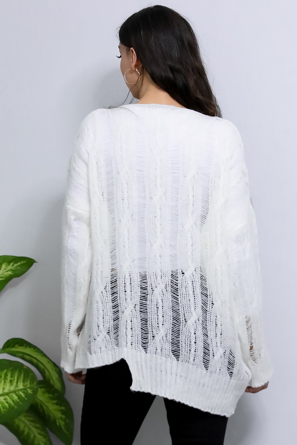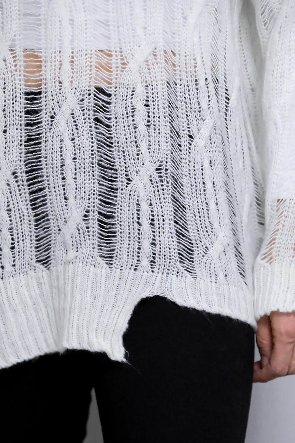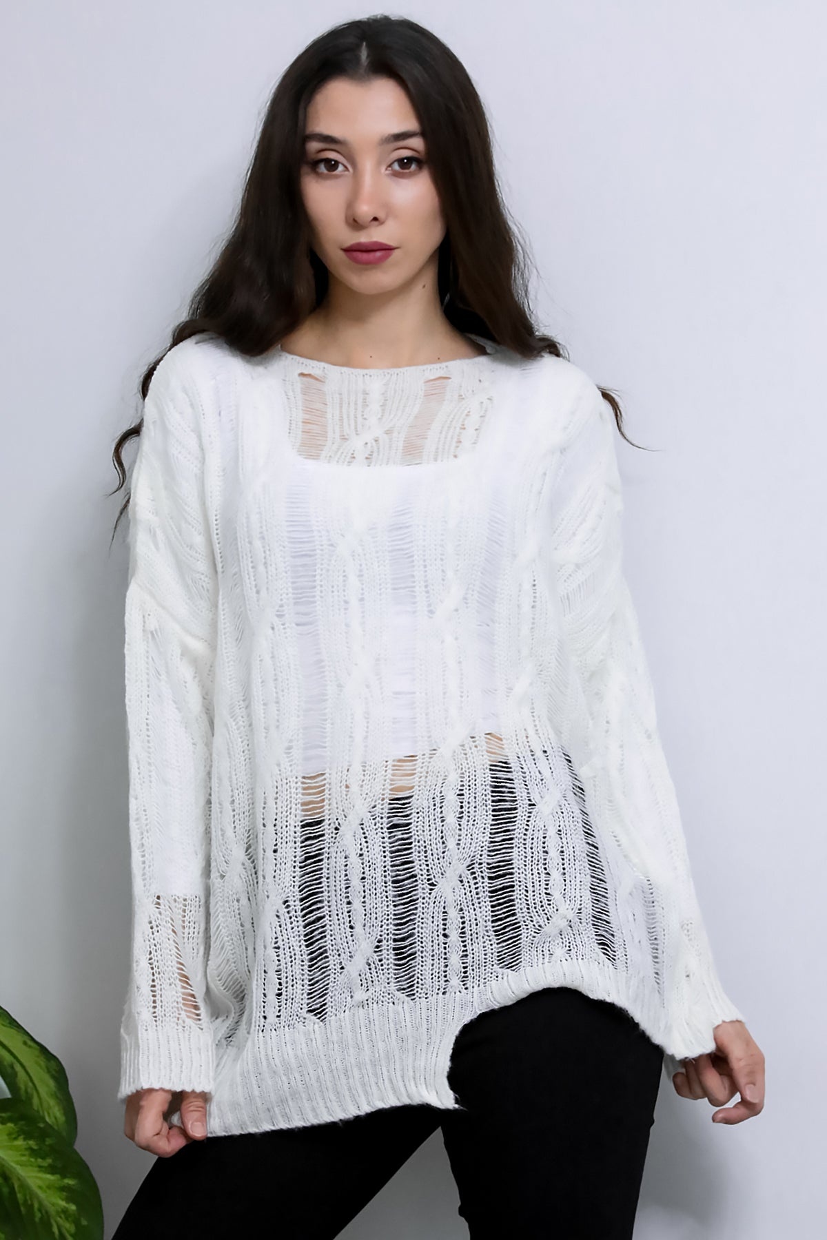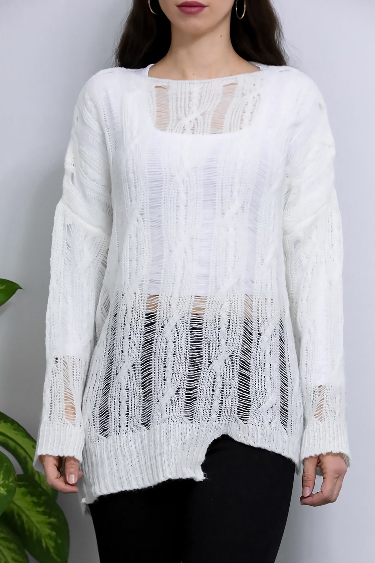 Kadın Kayık Yaka Fileli Triko Bluz Ekru