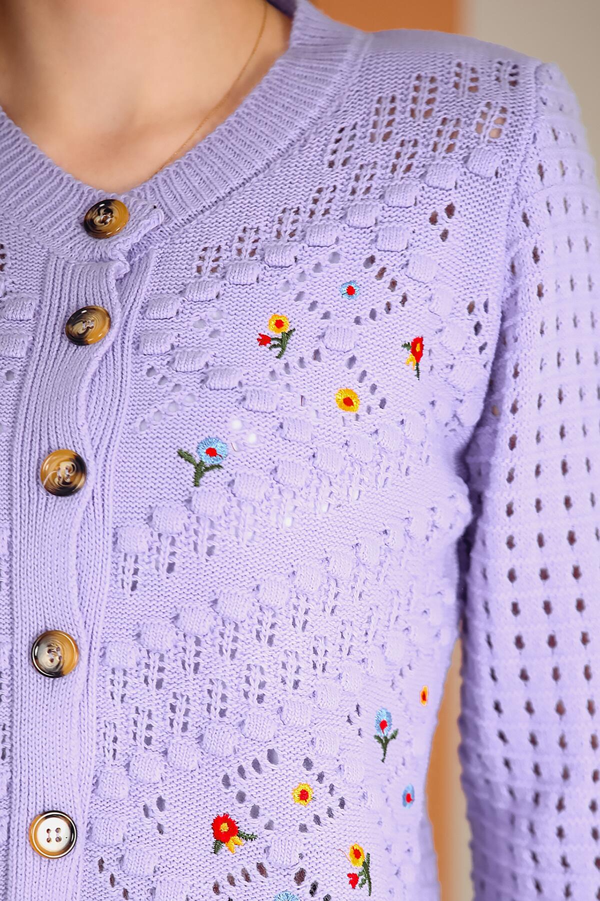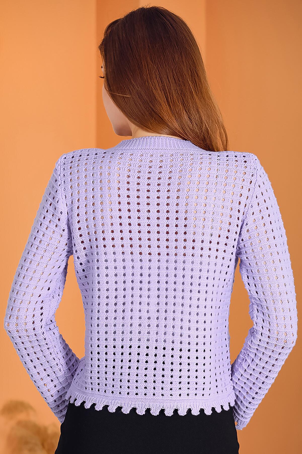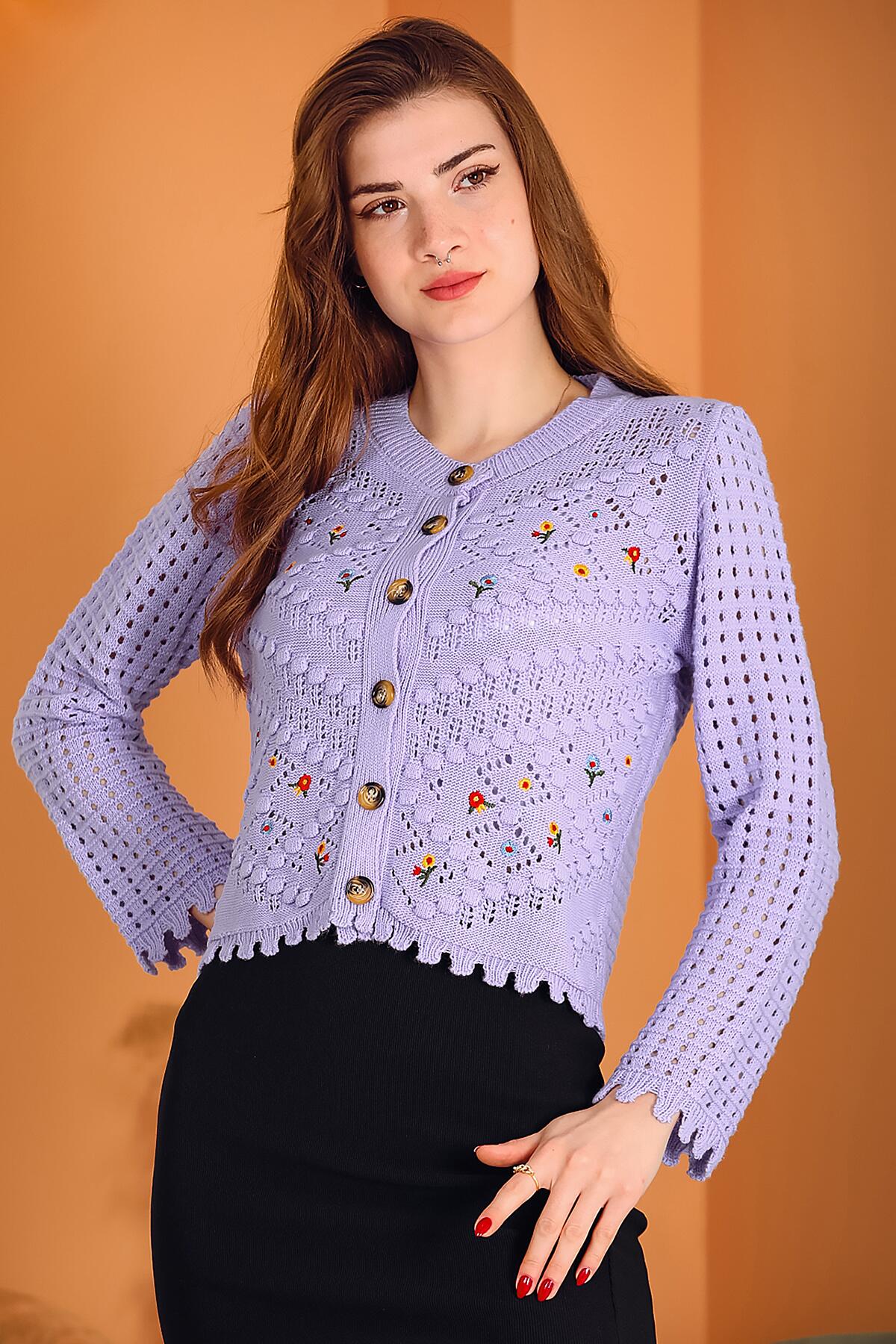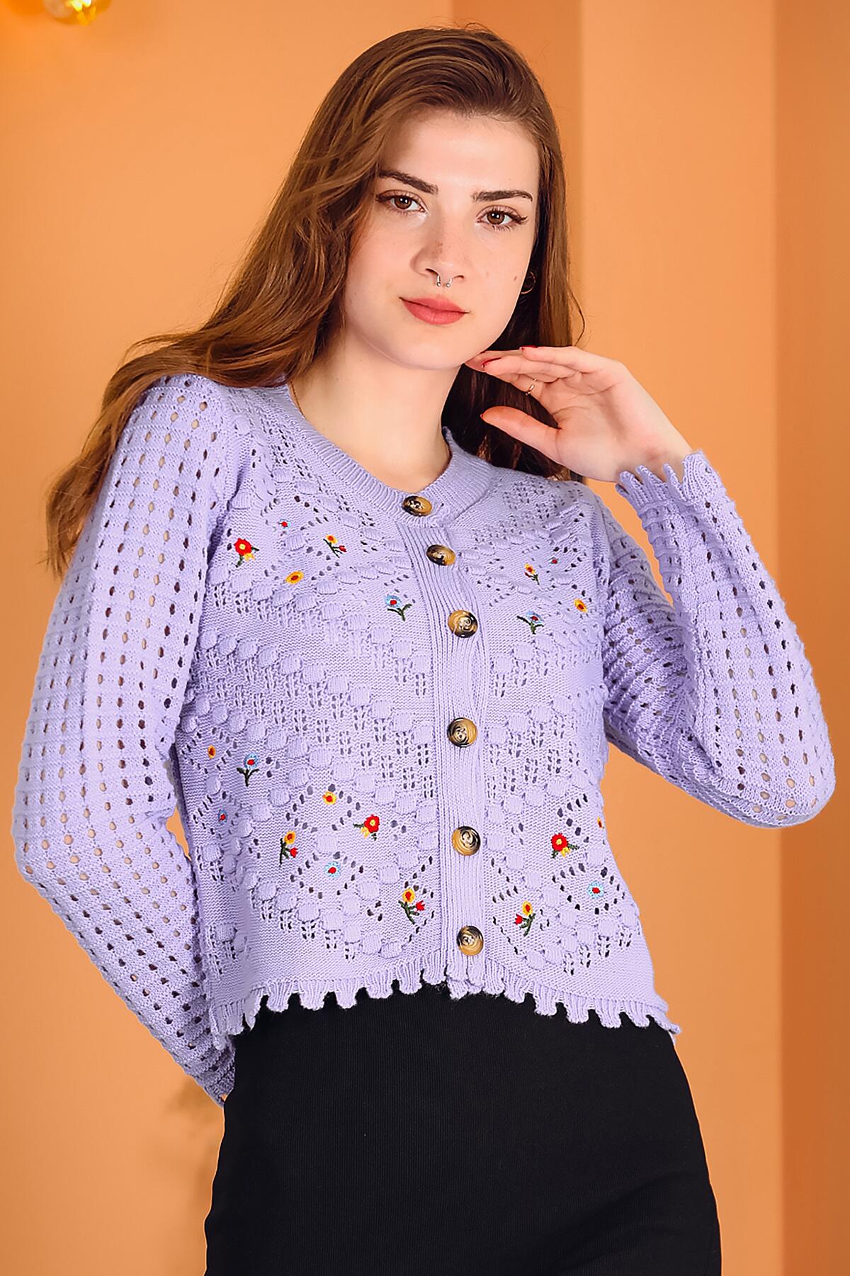 Kadın Nakışlı Düğmeli Kısa Hırka Lila
