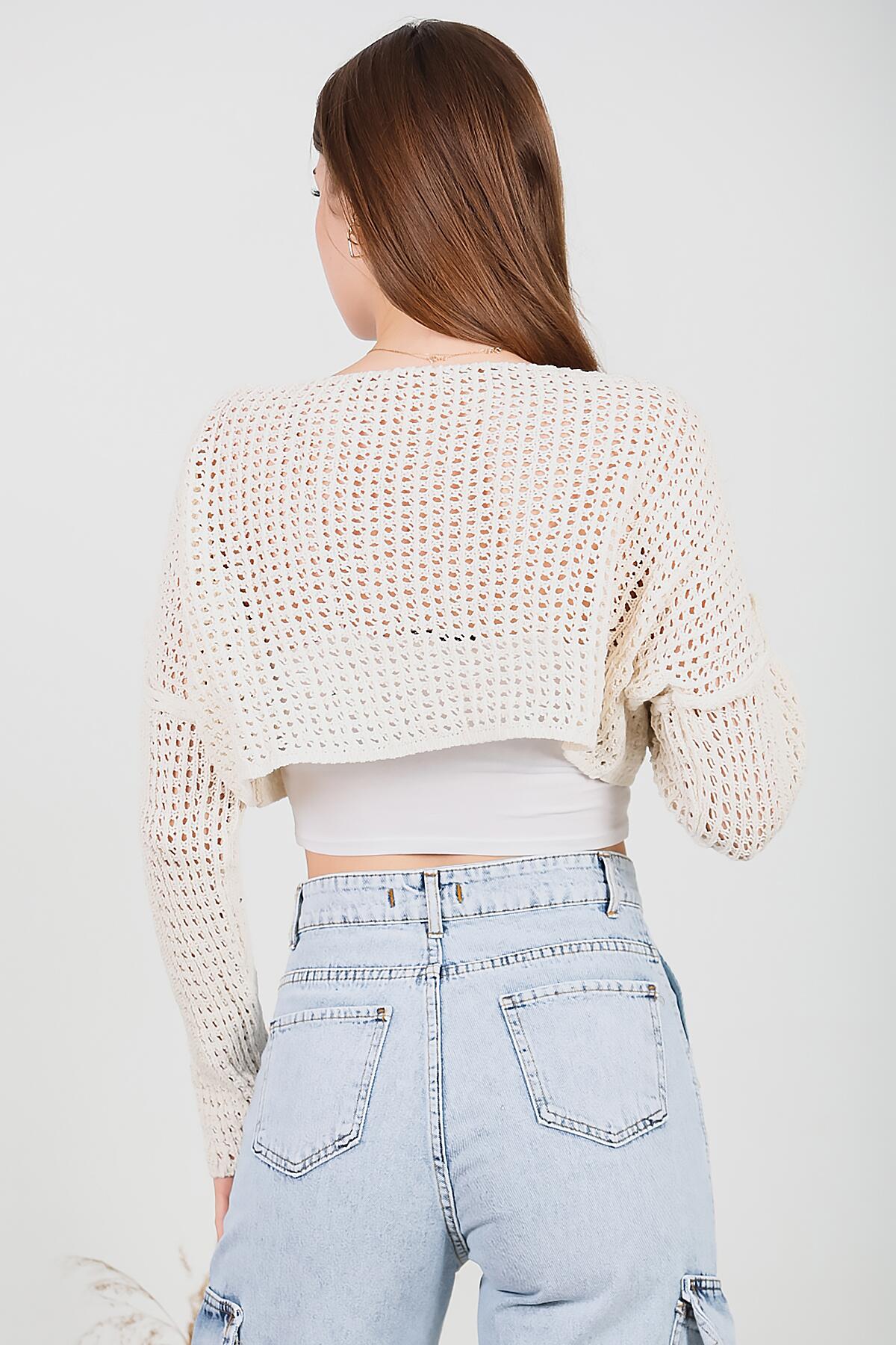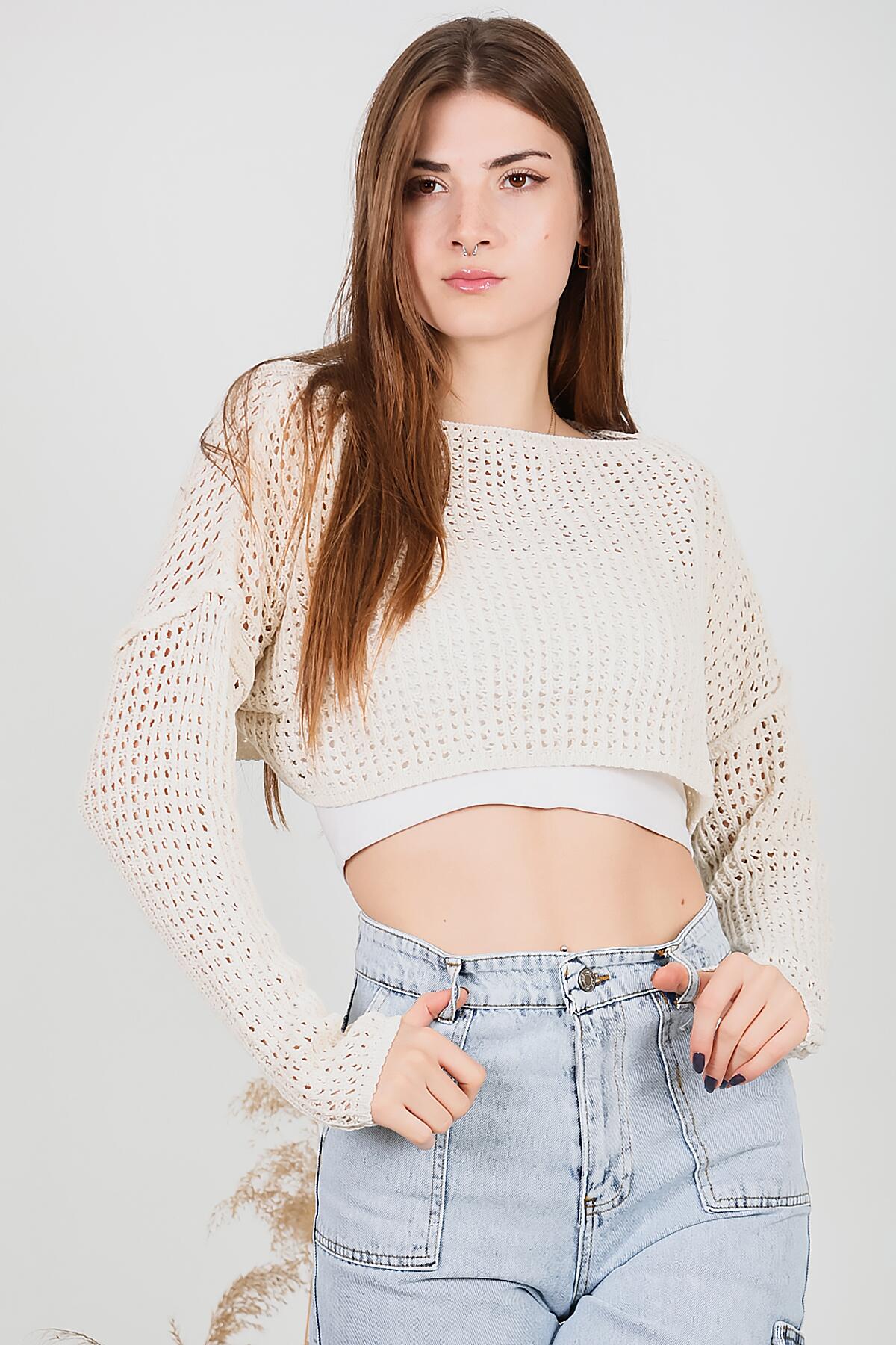 Kadın Omuz Düşük Yarasa Kol Triko Krem