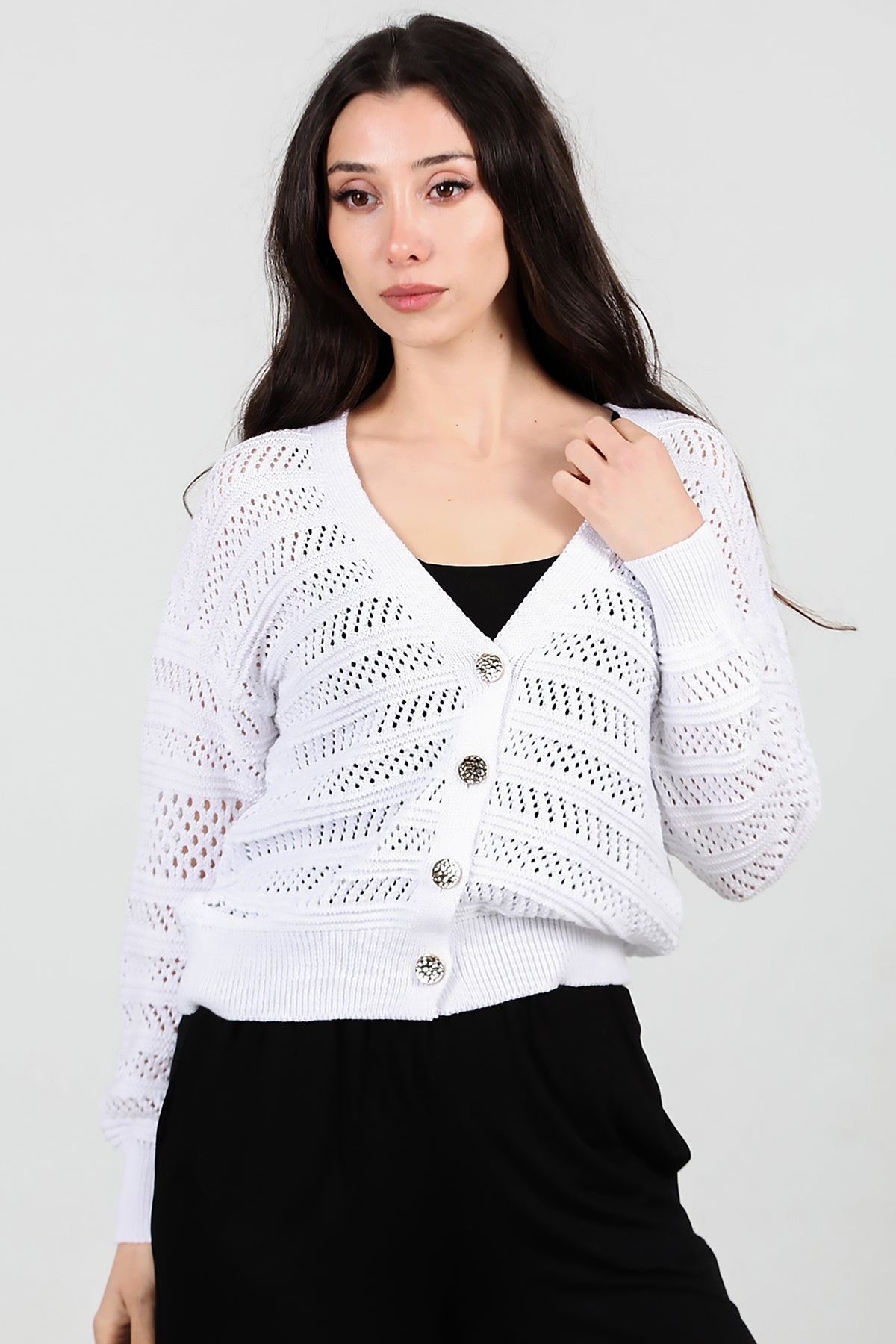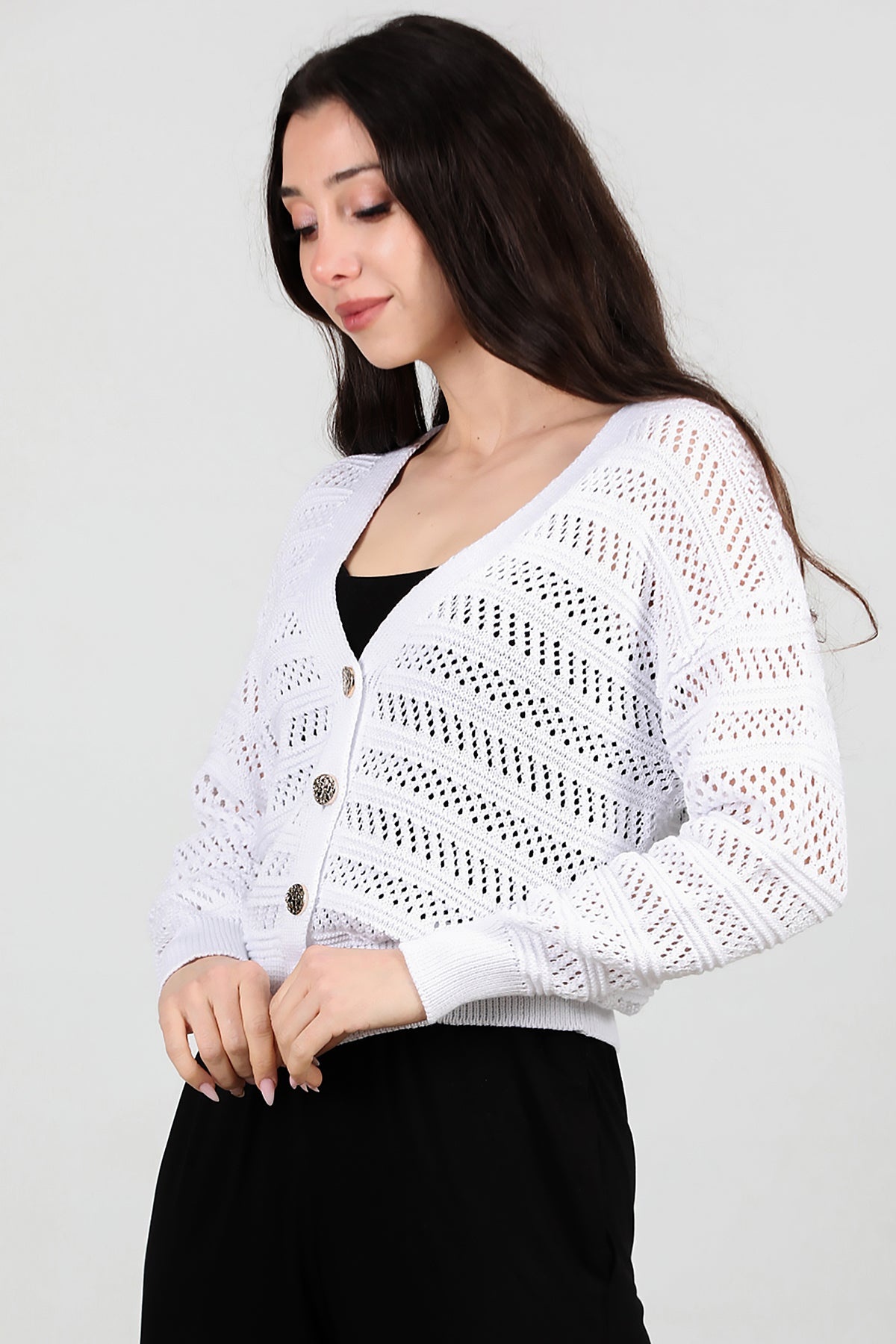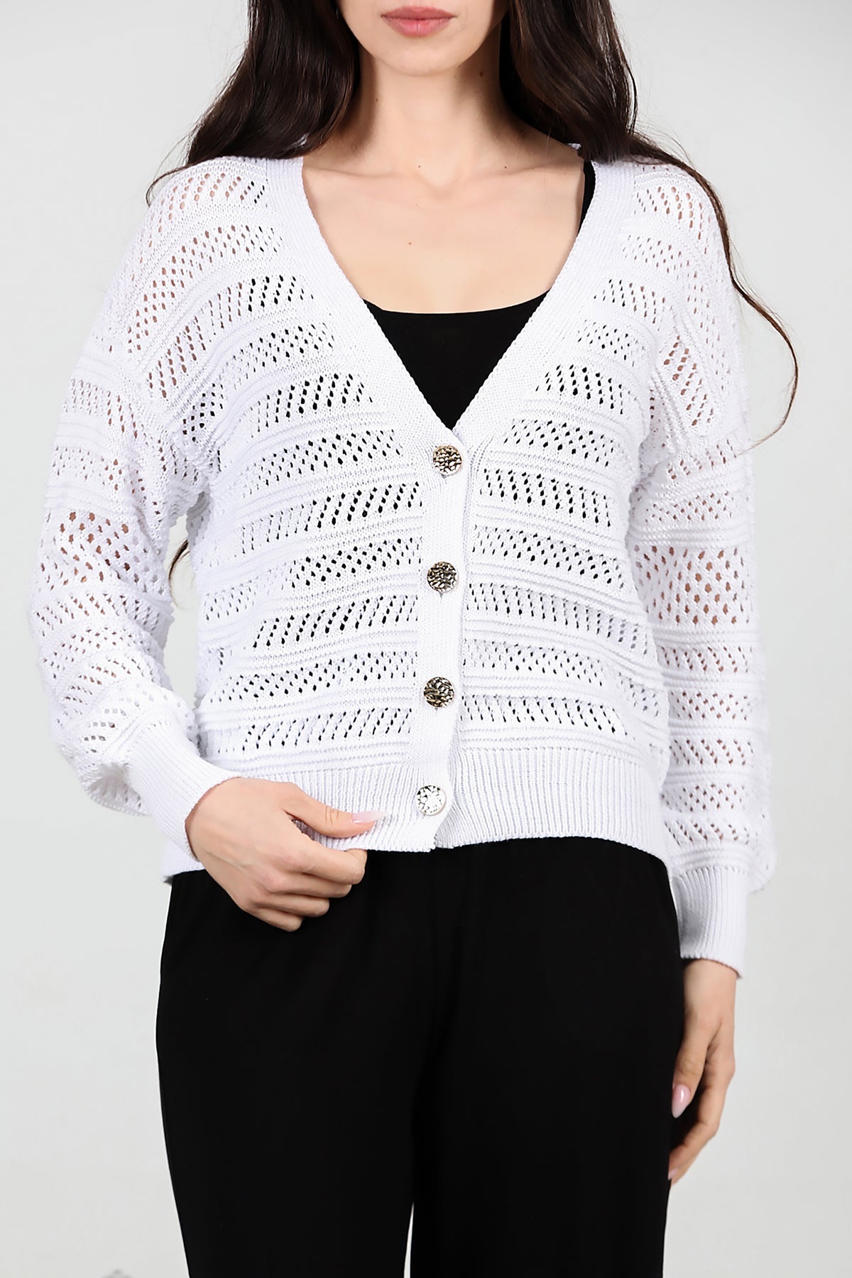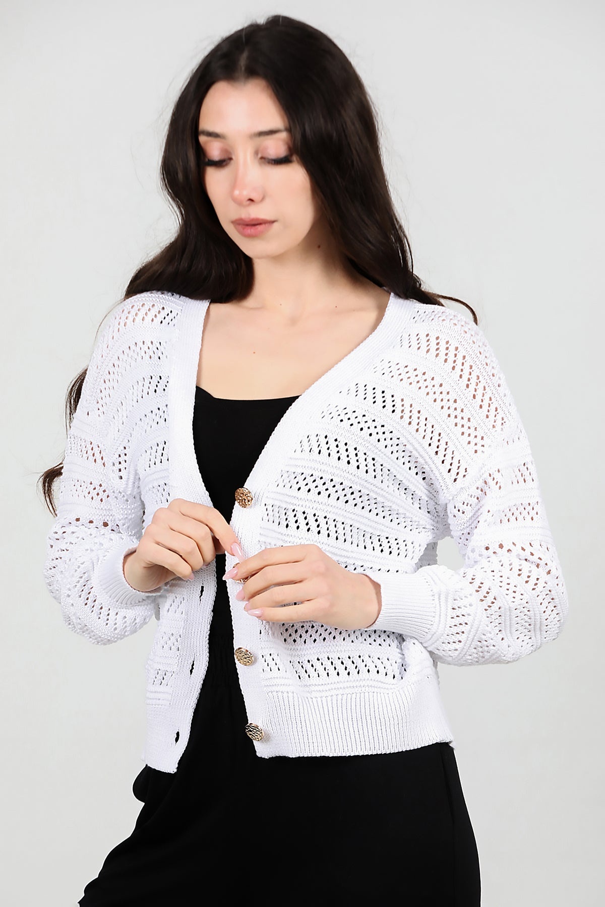Kadın Ön Düğmeli Hırka Ekru