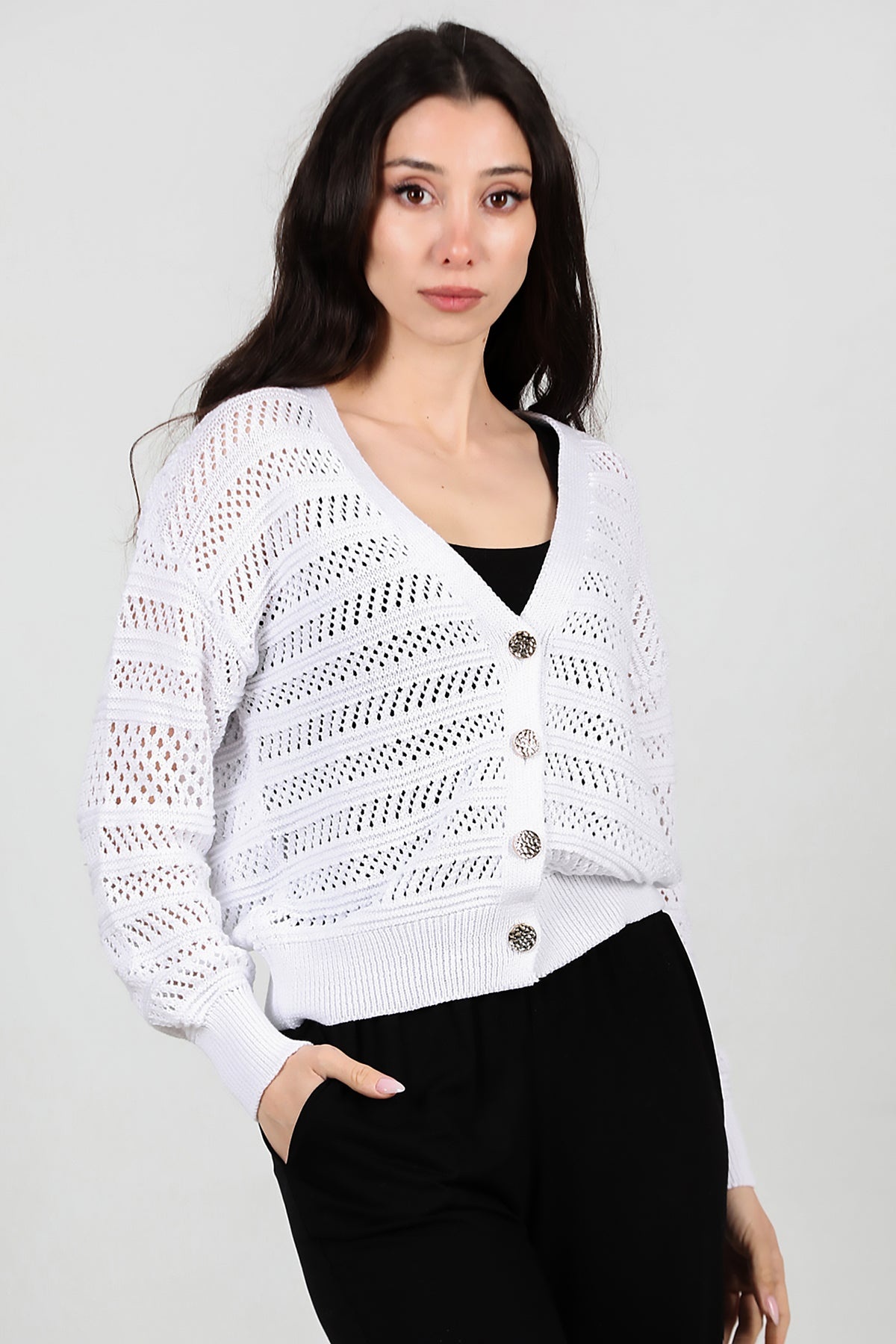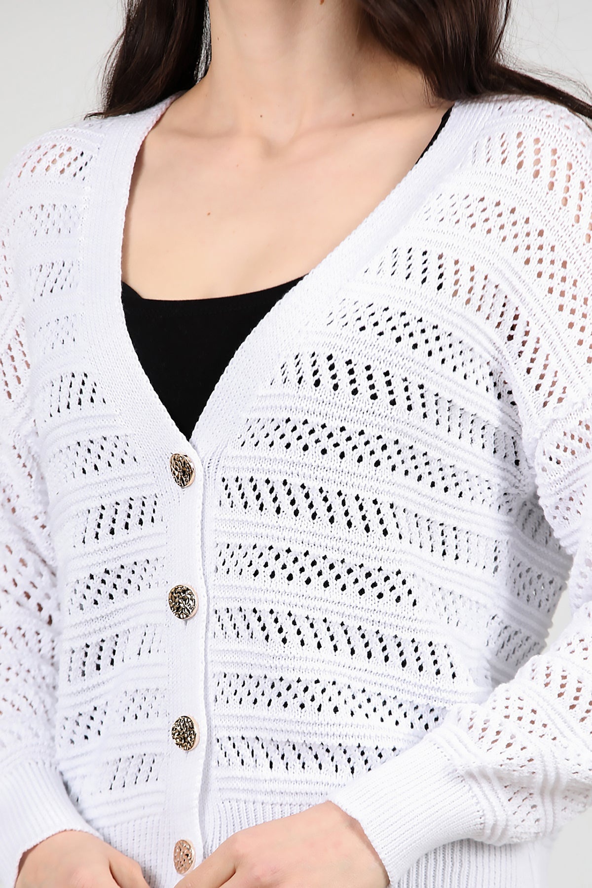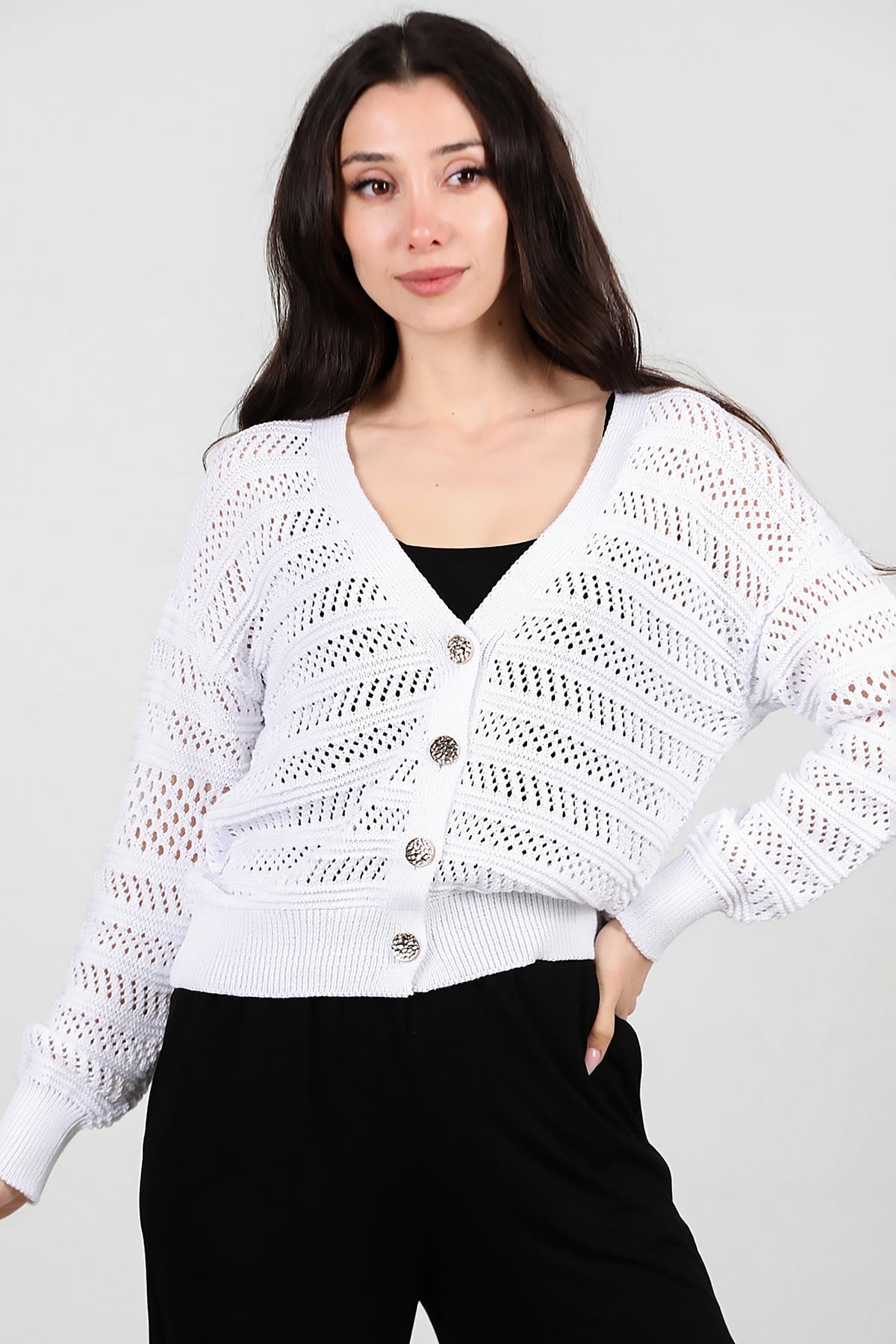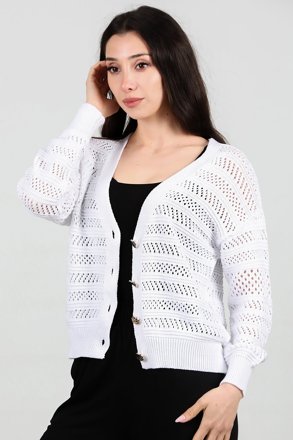 Kadın Ön Düğmeli Hırka Ekru