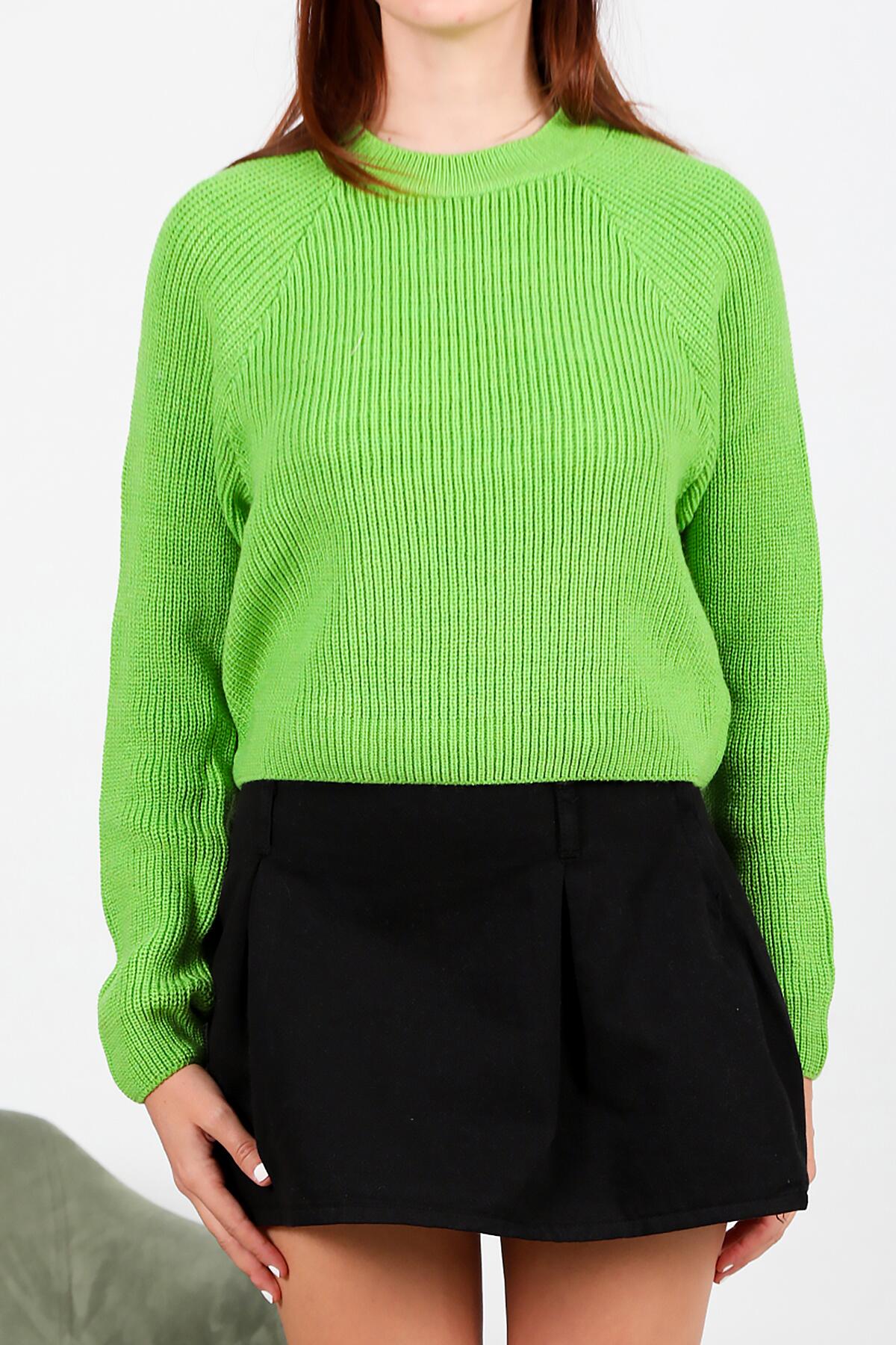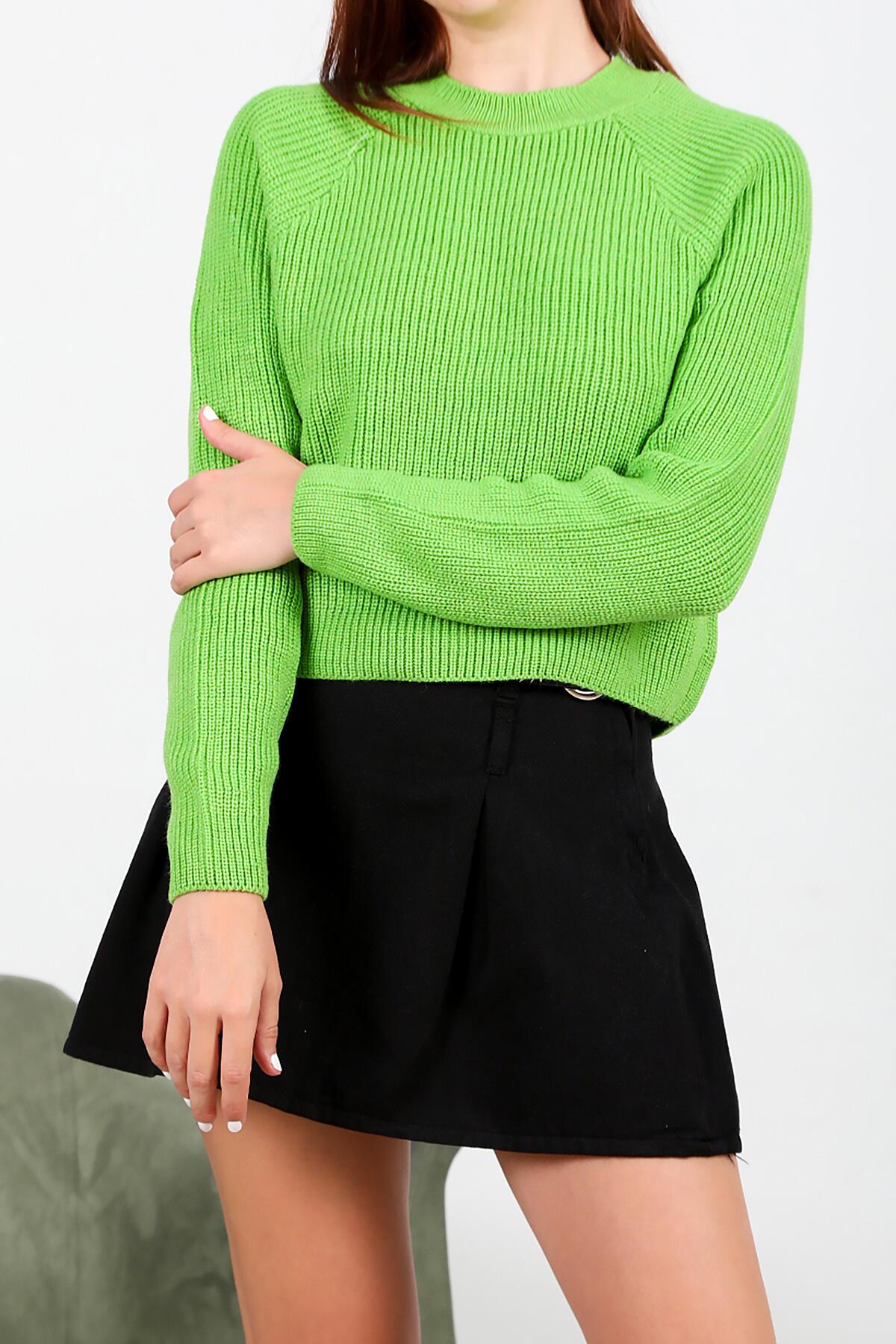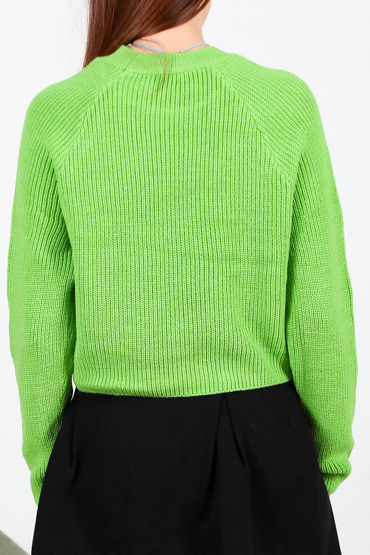 Kadın Sıfır Yaka Triko Kazak Yeşil