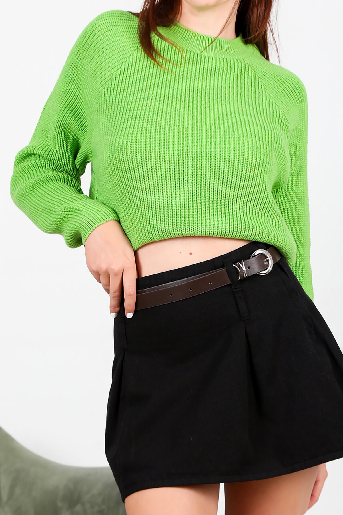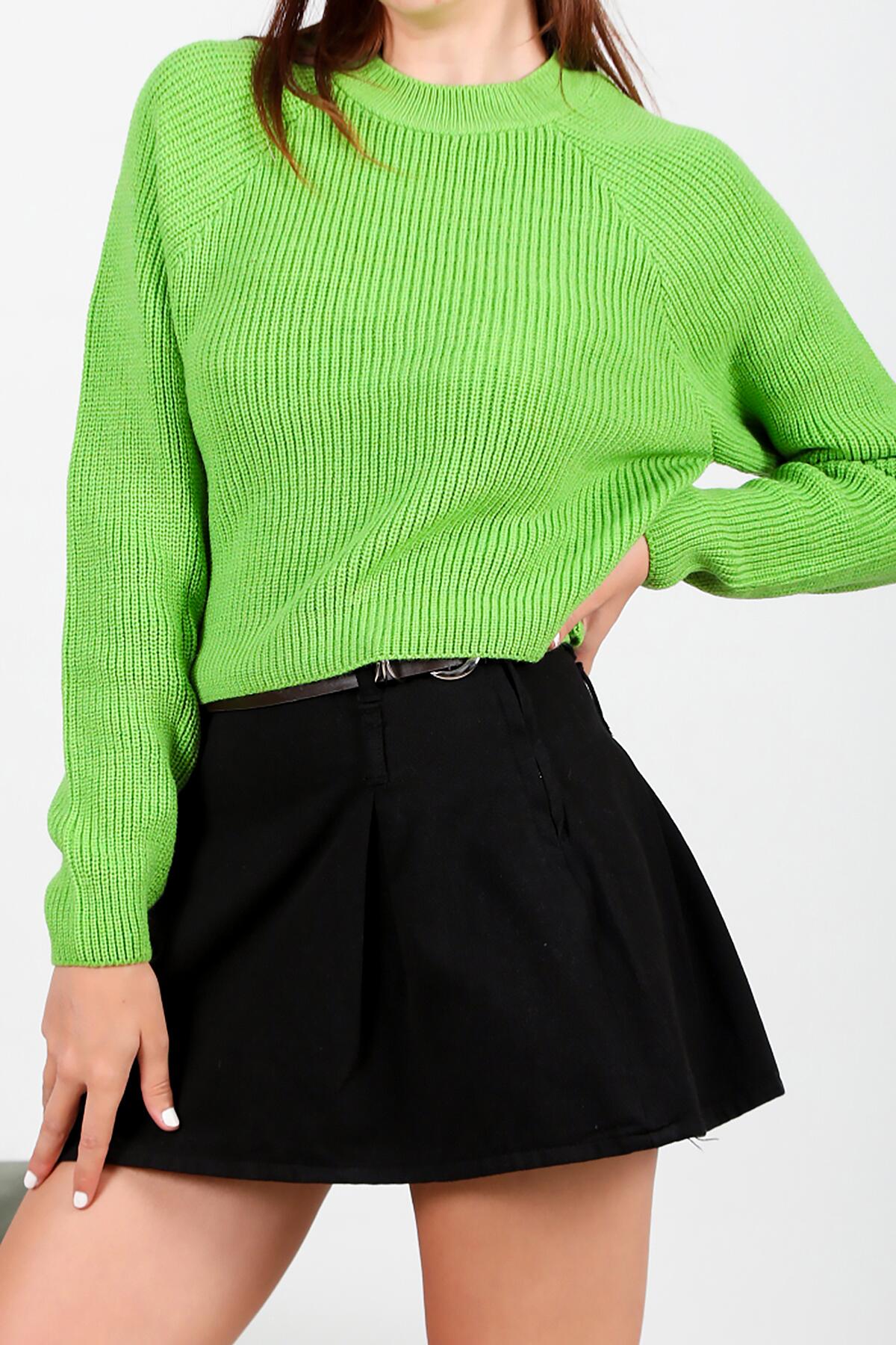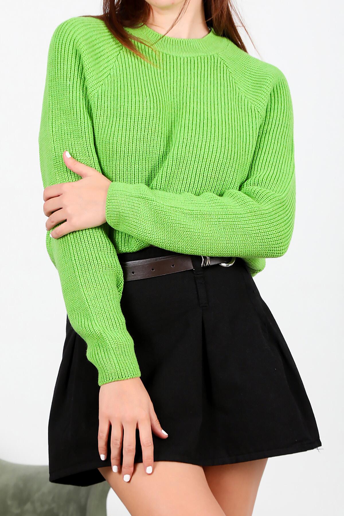 Kadın Sıfır Yaka Triko Kazak Yeşil