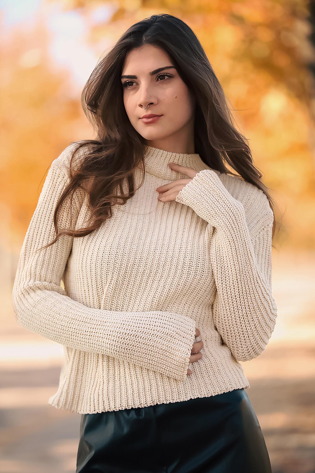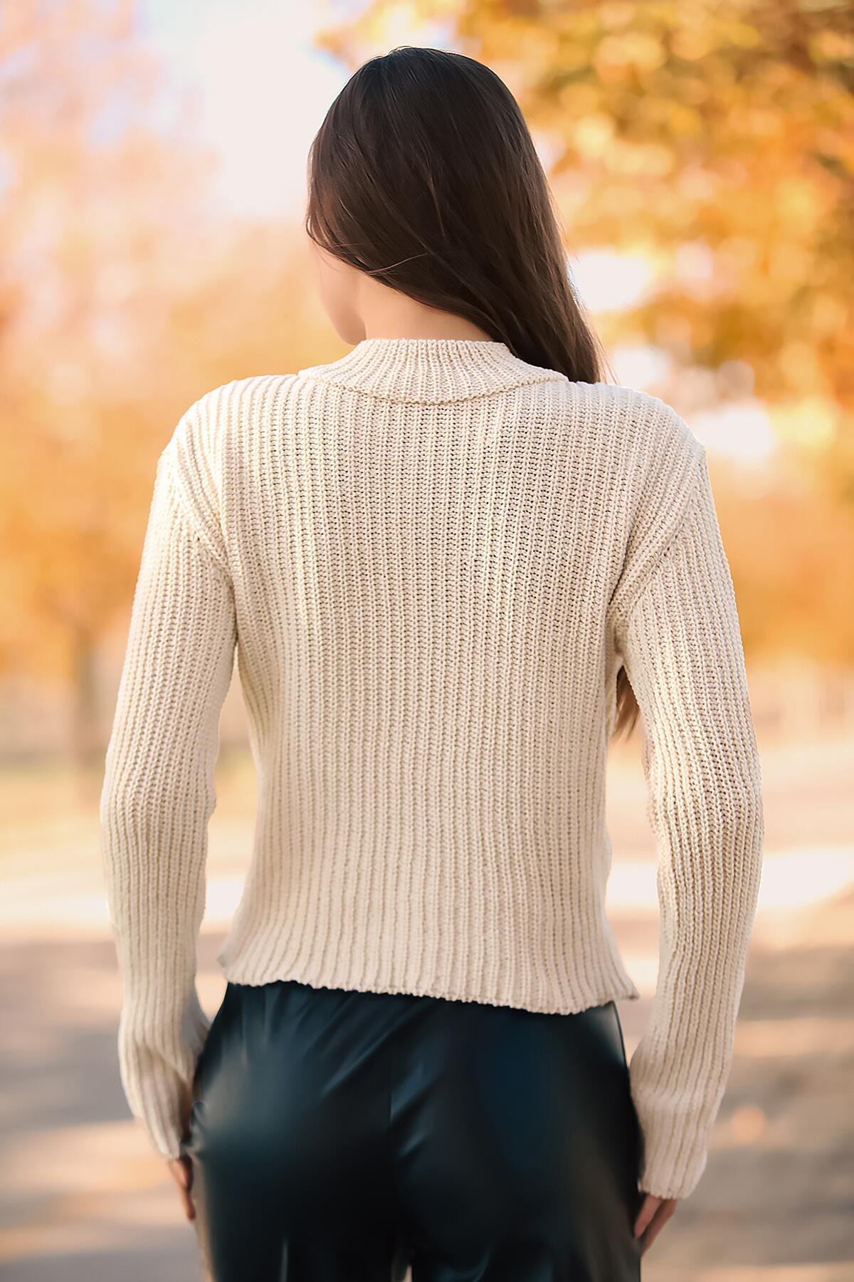 Kadın Yarım Balıkçı Yaka Kazak Krem